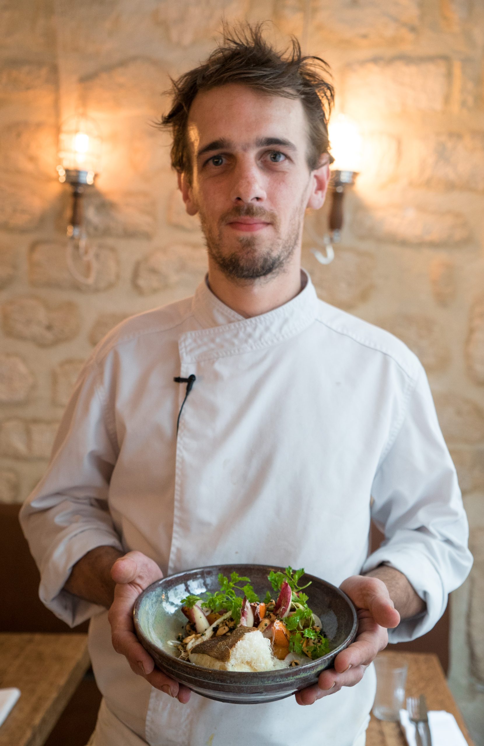 Puis, terminez la cuisson au four pendant une petite minute. Pour apporter de la fraicheur au plat, réalisez une salade avec des pousses d’endives pourpres, des radis ronds, de l’oignon cébette, du cerfeuil, de la ciboulette et une vinaigrette.