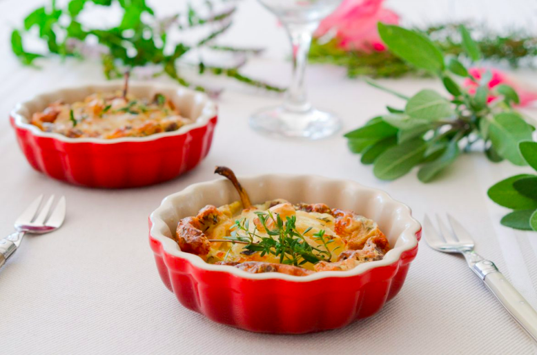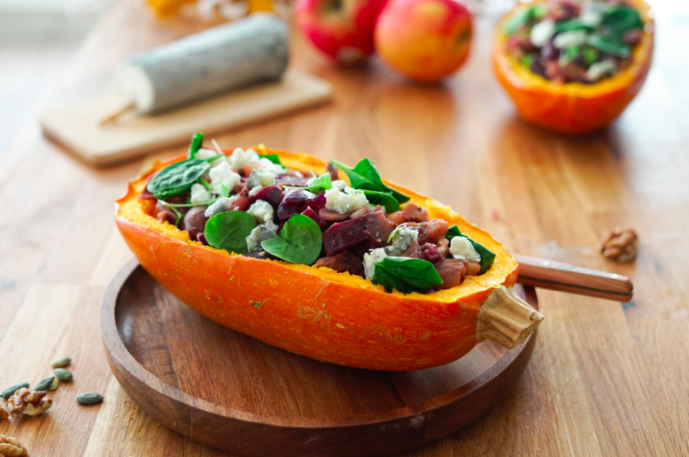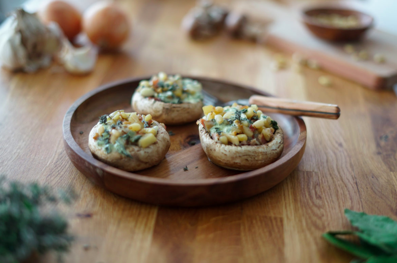 - Champignons farcis à la pomme et à la Fourme d’Ambert :