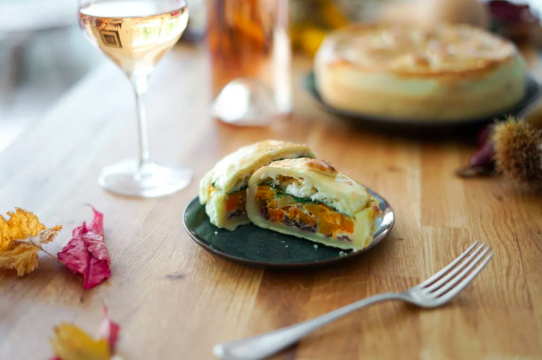 - Tourte végétarienne à la courge et au fromage de chèvre :